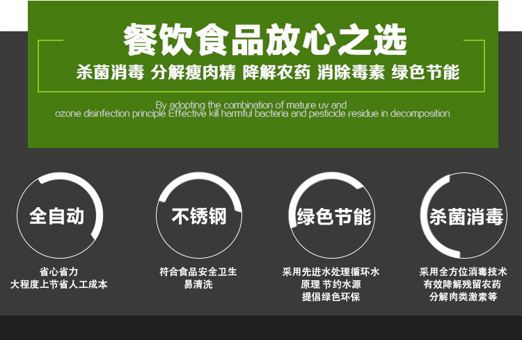 眾得力廚具為您提供食品消毒洗菜設備,本系列食品消毒洗菜機有1.2米和1.5米兩款,可定做其他規(guī)格食品消毒洗菜設備,本款為1500型豪華洗菜機,帶臭氧消毒,活性炭吸附,水泵高壓沖擊漩渦清洗,流水內循環(huán),節(jié)約水源,清洗消毒一體,清洗效果好。