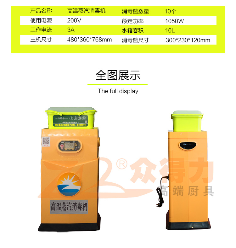 眾得力廚具為您提供主題餐廳流行消毒設備,小黃人蒸汽快速消毒機,菜籃子式消毒機,消毒完畢提提就給客戶了,多種組合,消毒看的到。衛生高效!你家餐廳有配嗎?抓緊時間電話聯系18879770143 0797-8284441訂購!
